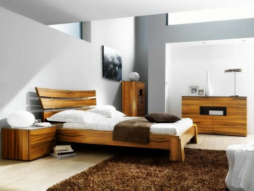 1. Деревянная кровать с простыми линиями и минималистичным дизайном создаст основу для современной спальни. Добавьте к ней ночные тумбы и комод из дерева, чтобы завершить образ.