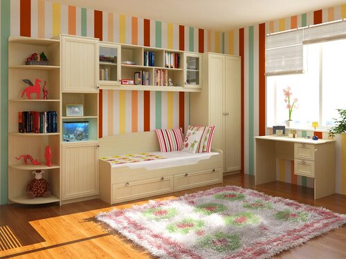Мебельный гарнитур в маленькую детскую комнату дошкольницы