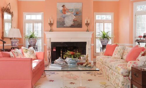 Фото 1: Пример сочетания персиковых стен с нейтральной мебелью в современном интерьере.