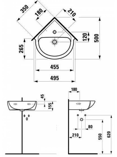Угловой умывальник kolo Runa l82735000 раковина 35 см