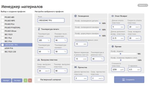 Параметры для печати PLA пластиком