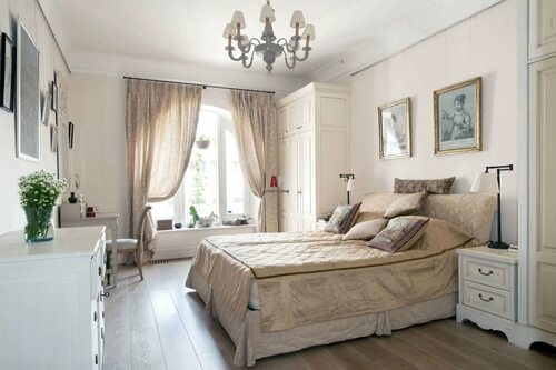Для создания атмосферы прованса в спальне выбирайте мебель из натурального дерева, с легкими потертостями и элементами декора в виде резьбы. Добавьте текстиль с цветочным принтом, мягкие пастельные покрывала и подушки. Не забудьте про винтажные элементы декора, такие как старинные рамы, свечи и ковры.
