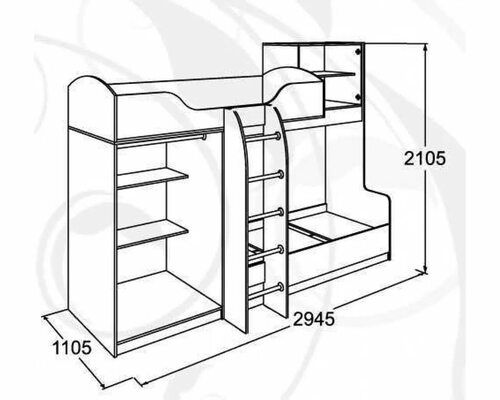 Двухъярусная кровать Юниор 2 Подробный чертеж с размерами