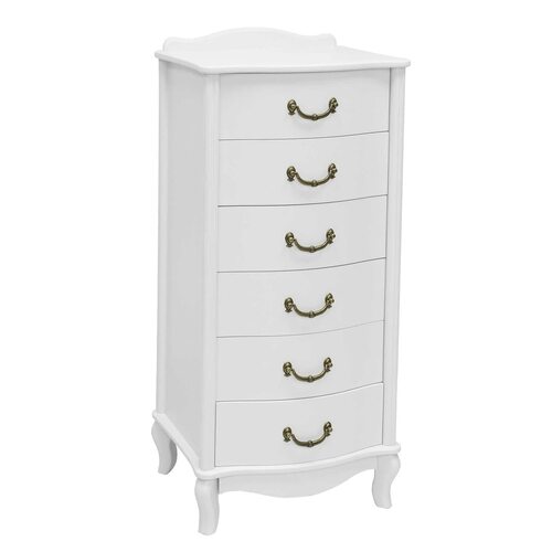 Комод Джульетта белого цвета представляет собой узкую модель с несколькими выдвижными ящиками, что делает его идеальным для хранения мелких предметов. Белый цвет придает комоду легкость и воздушность, что делает его универсальным для различных интерьеров.