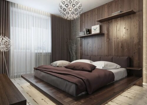 Интерьер спальни с коричневой мебелью