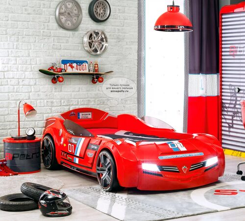 Красная кровать в виде автомобиля может стать ярким акцентом в интерьере спальни. Сочетание стиля автомобиля и удобства кровати создаст уникальную атмосферу.