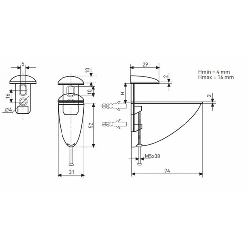 Полкодержатель для стеклянной полки Quadro Mini 50х26х25