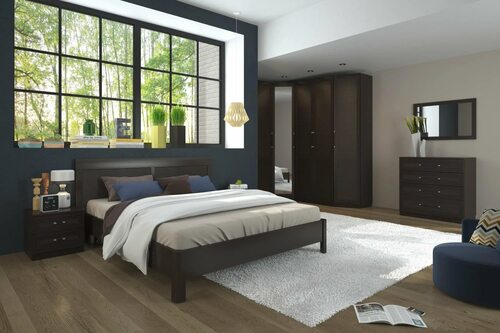Мебель венге отличается тёмным оттенком с красноватым оттенком, что придает интерьеру спальни изысканность и утонченность. Она может быть использована как для создания классического, так и современного стиля.