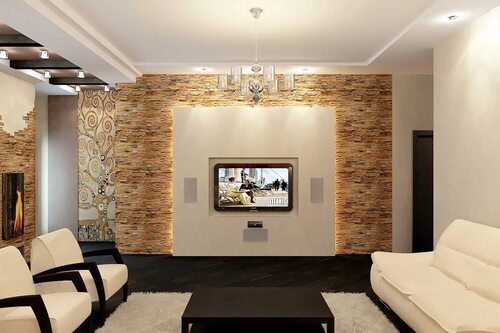 Декоративный камень в интерьере гостинной