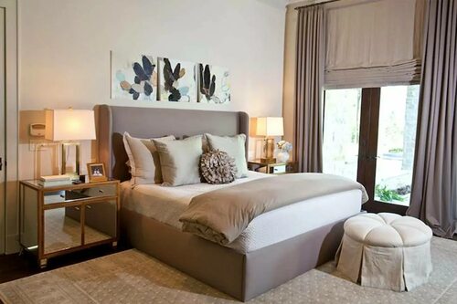 Бежевый цвет отлично сочетается с нейтральными оттенками, такими как белый, серый и коричневый. Пастельные оттенки также добавят спокойствия и уюта в интерьер спальни. Используйте бежевые стены, постельное белье и шторы, дополняя их светлыми акцентами.
