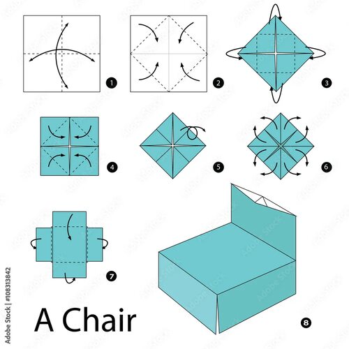 2. Следуя пошаговым инструкциям, сложите бумагу, чтобы создать основу стульчика.