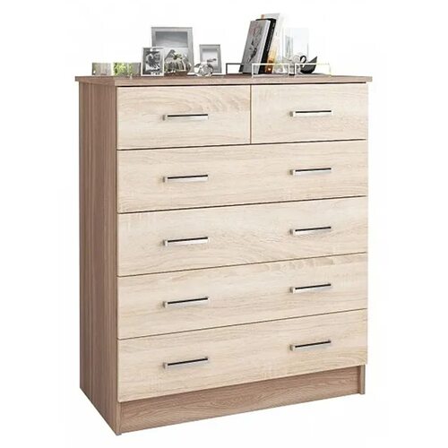 Комод Катрин 5 венге дуб молочный выполнен из высококачественных материалов, обладает прочной конструкцией и функциональным дизайном. Он оснащен несколькими выдвижными ящиками и открытой полкой, что обеспечивает достаточно места для хранения одежды, белья и других предметов.