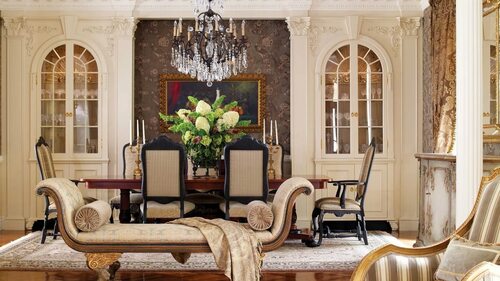 Подушки, шторы, покрывала и ковры – текстильные изделия играют важную роль в создании классического интерьера. Обилие тканей, вышивка, кружева и драпировки придают помещению изысканность и роскошь.