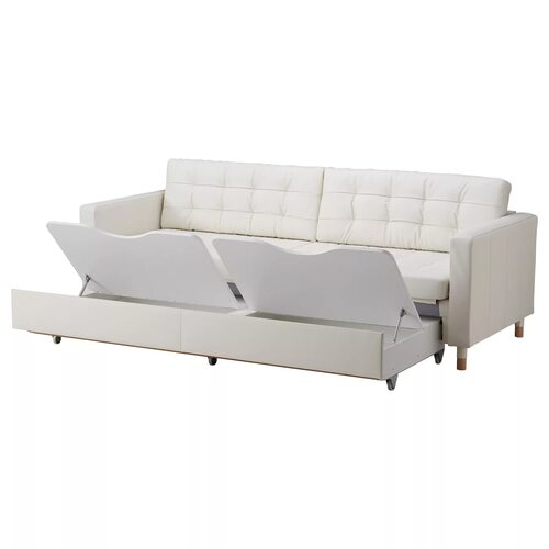 Диван Икеа Ландскруна 3 местный имеет современный скандинавский стиль с прямыми линиями и удобными подушками. Он также оснащен функцией раскладывания, позволяя превратить его в удобную кровать для гостей.