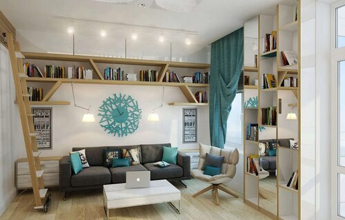 Зонирование спальни и гостиной в одной комнате 17 кв.м
