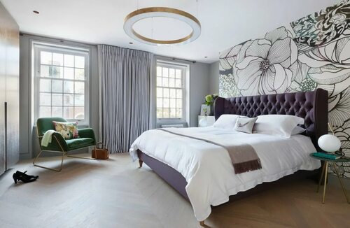 Дизайн спальни с акцентной стеной у кровати может значительно изменить общий вид комнаты, добавив в нее стиль и индивидуальность. Акцентная стена может быть оформлена различными способами, от использования ярких красок до установки декоративных панелей или обоев с необычным узором.