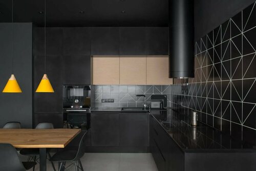 В современном интерьере кухни черная плитка может создать стильный и утонченный облик. Она прекрасно сочетается с металлическими элементами, стеклом и яркими акцентами. Фотографии с примерами таких интерьеров помогут вам найти идеи для своей кухни.