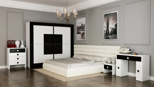 Черно-белая цветовая гамма в спальне всегда выглядит стильно и элегантно. Компания \"Ами\" предлагает широкий выбор мебели для создания уютного и модного интерьера.