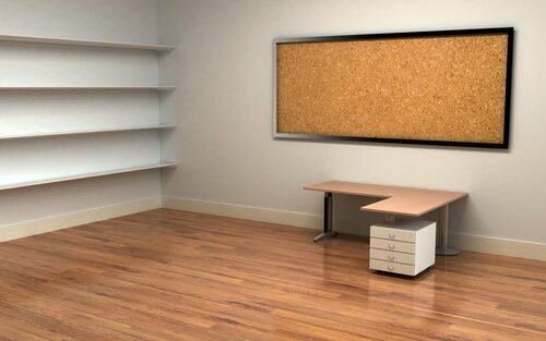 Пустая комната с полками и столом