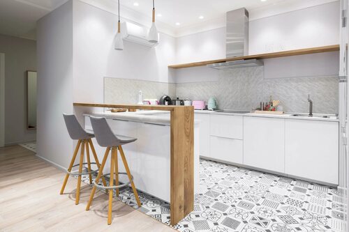 Кухня с деревянной барной стойкой