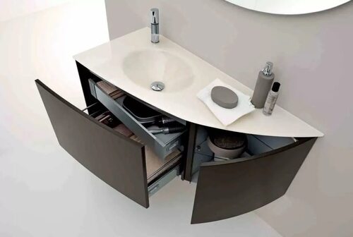 Скошенная тумба под раковину в ванной комнате может стать стильным и функциональным элементом интерьера. Она помогает оптимизировать использование пространства и добавляет уникальный дизайнерский акцент.
