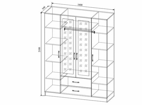 Распашной шкаф Суммит 160 технический чертеж