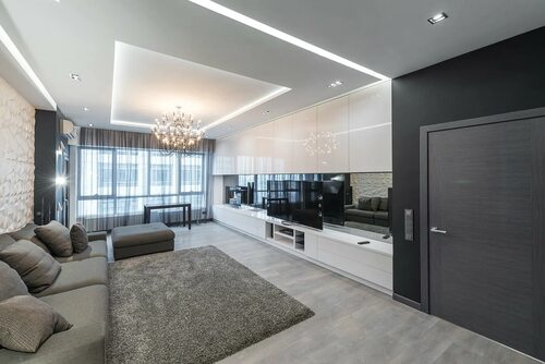Одной из ключевых особенностей хай тек дизайна гостиной является использование современных материалов, таких как стекло, металл, пластик. Мебель в этом стиле обычно имеет гладкие поверхности и четкие геометрические формы. Важное внимание уделяется также освещению - светодиоды, подсветка, неоновые элементы, создающие атмосферу современности и технологичности.