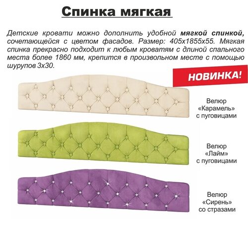 Мягкие спинки для детских кроватей представлены в разнообразных дизайнах: от классических до современных. Вы можете выбрать спинку, соответствующую стилю комнаты вашего ребенка, а также его предпочтениям. Некоторые спинки украшены яркими рисунками и узорами, что делает их еще более привлекательными для детей.
