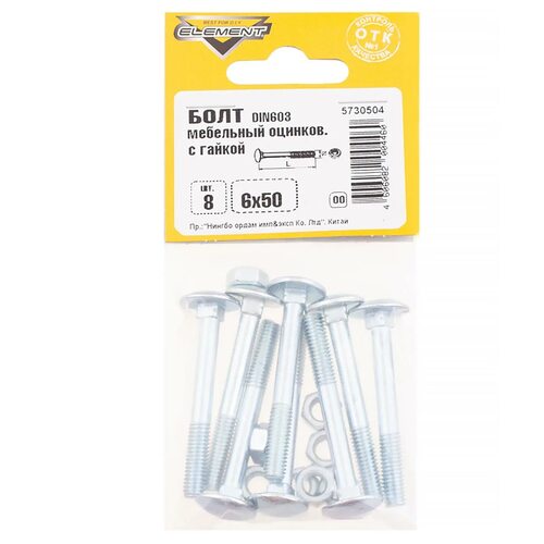 Болт мебельный 6х50 с гайкой - незаменимая деталь для сборки мебели. Он обеспечивает надежное крепление элементов мебели, обеспечивая долговечность и устойчивость конструкции.