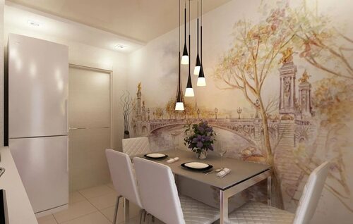 Обои в интерьере кухни