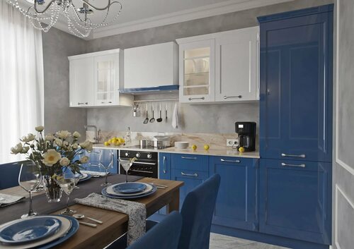 Сине белая кухня может стать стильным и уютным элементом интерьера. Этот цветовой дуэт подходит как для классических, так и для современных стилей. Он придает пространству свежесть и яркость, а также создает ощущение чистоты и порядка.