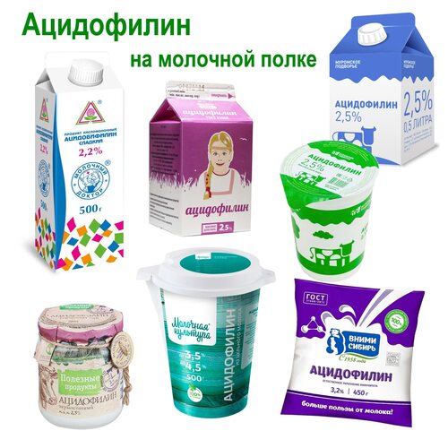 Первая фотография демонстрирует продукты, содержащие ацидофилин, их полезные свойства и влияние на пищеварение.