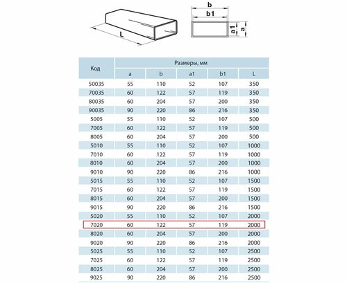 Воздуховод плоский equation 60х204 мм 2.5 м