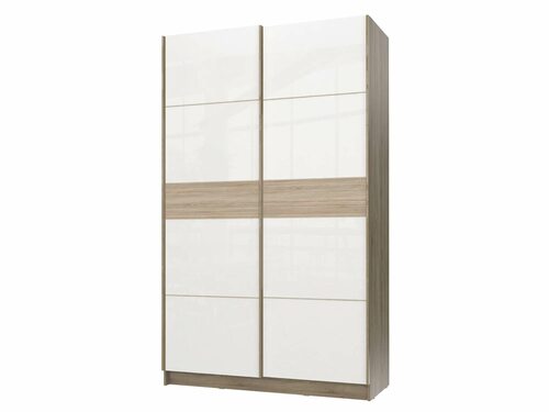 Шкаф купе в белом глянцевом исполнении с элементами белого дуба - стильное и практичное решение для организации хранения в вашем интерьере.