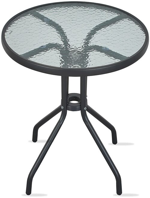 Стол с круглой стеклянной столешницей - отличное решение для сада. Он создает ощущение легкости и простора, а также прекрасно впишется в любой дизайн.