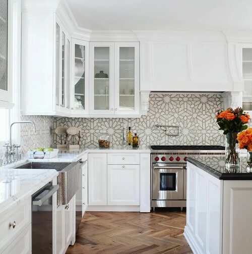 Фартук из натурального камня или мозаики может стать изысканным акцентом в белой кухне. Также стоит рассмотреть варианты с фотопечатью или рисунком, которые добавят индивидуальности и уютности интерьеру.