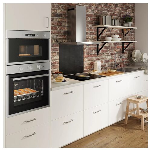 Духовой шкаф на уровне пояса - это удобное и практичное решение для кухонных интерьеров. Он позволяет удобно располагать кулинарные принадлежности и облегчает доступ к выпечке и горячим блюдам.