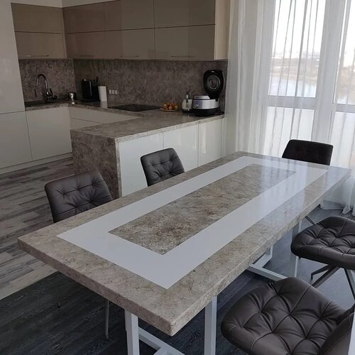 Обеденные столы с искусственными каменными столешницами становятся все более популярными благодаря своей прочности, устойчивости к царапинам и стильному внешнему виду. Искусственный камень позволяет создавать различные формы и текстуры, что делает каждый стол уникальным.