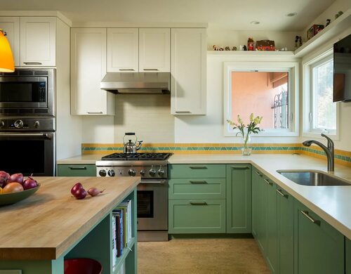 Одной из особенностей зеленой кухни с деревянной столешницей является использование натуральных материалов. Дерево придает интерьеру теплоту и природную красоту, а зеленый цвет добавляет свежести и яркости. На фотографиях вы сможете увидеть, как различные виды дерева и оттенки зеленого сочетаются в интерьере кухни, создавая уникальный стиль.