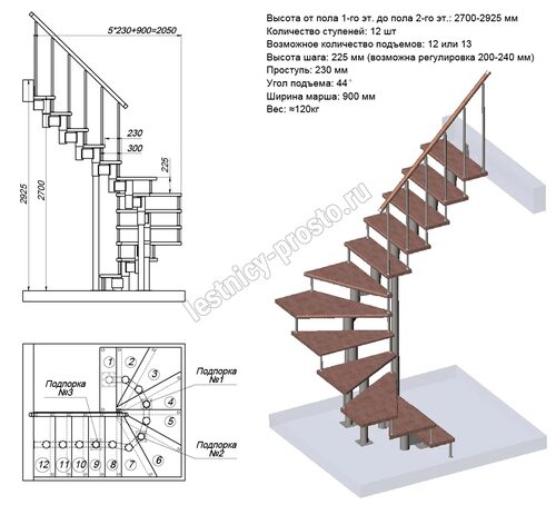 Модульная лестница спринт (c поворотом на 180 градусов)