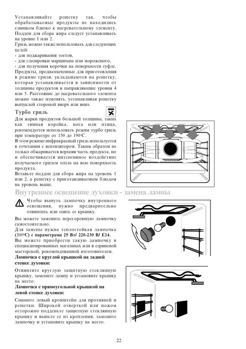 Перед тем как начать замену лампы, убедитесь, что духовой шкаф выключен и остыл. Не забудьте также отключить его от электросети.