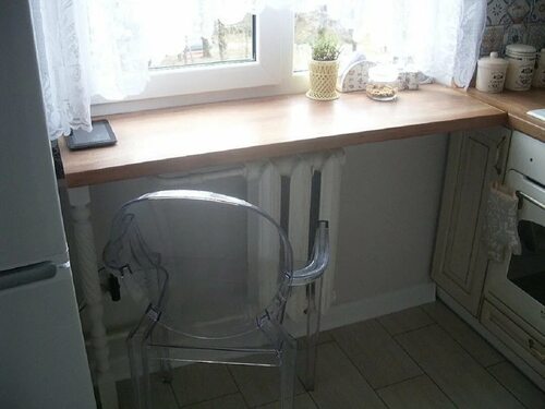 Маленькая кухня с подоконником столешницей