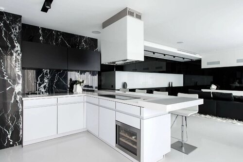 Черно-белые кухни в интерьере