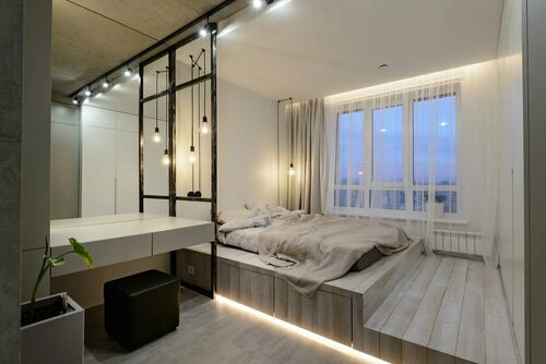 Кровать на подиуме - это не только модный дизайнерский трюк, но и практичное решение для организации пространства в спальне. Подиум может служить не только подставкой для кровати, но и дополнительным хранилищем.