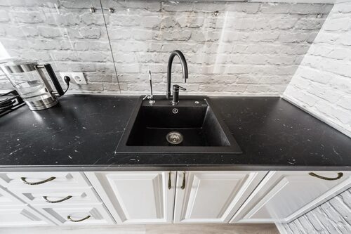 Кухня с белой столешницей и черной мойкой - это стильное и современное решение для интерьера. Белый цвет столешницы придает пространству светлоту и визуально увеличивает помещение, в то время как черная мойка добавляет контраст и элегантность.