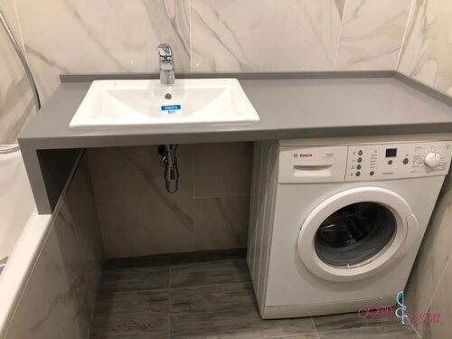 Накладная раковина на столешницу и стиральная машина под столешницей