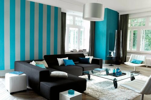 Интерьер зала в бирюзовом цвете