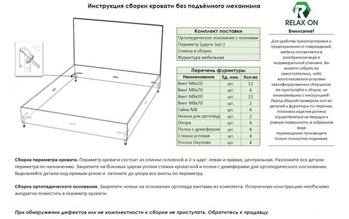 Схема сборки кровати с подъемным механизмом 1600х2000 Парма Нео