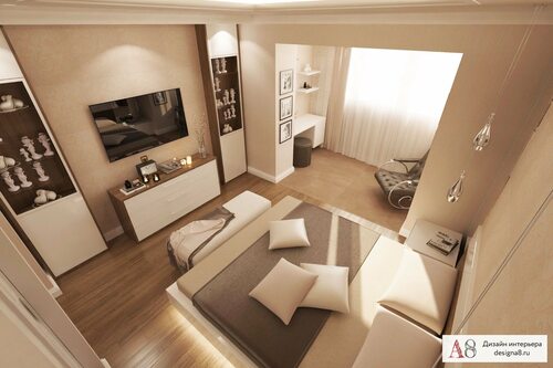 Спальня гостиная 20 м2 зонированием