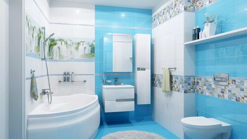 Варианты использования голубой плитки в дизайне ванной комнаты
